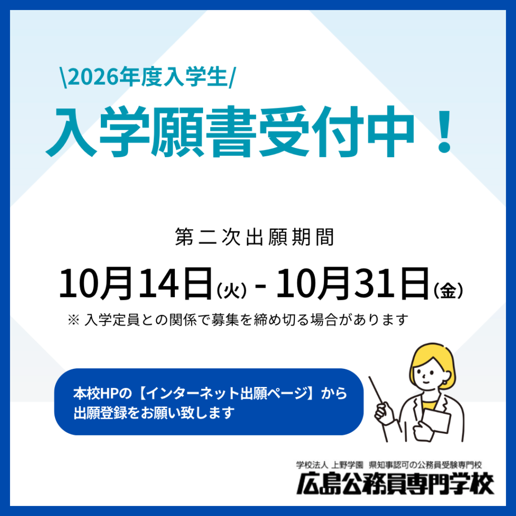 ‘公務員’のことなら、広島公務員専門学校へお任せください🌈